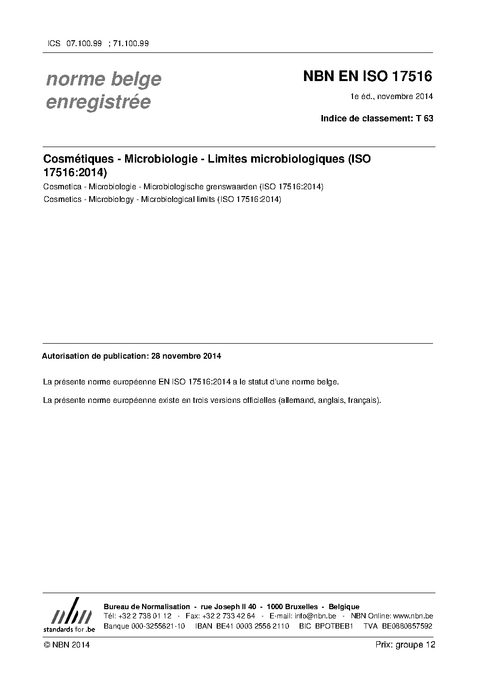 | Publisher | Bureau de Normalisation Belge (NBN) |