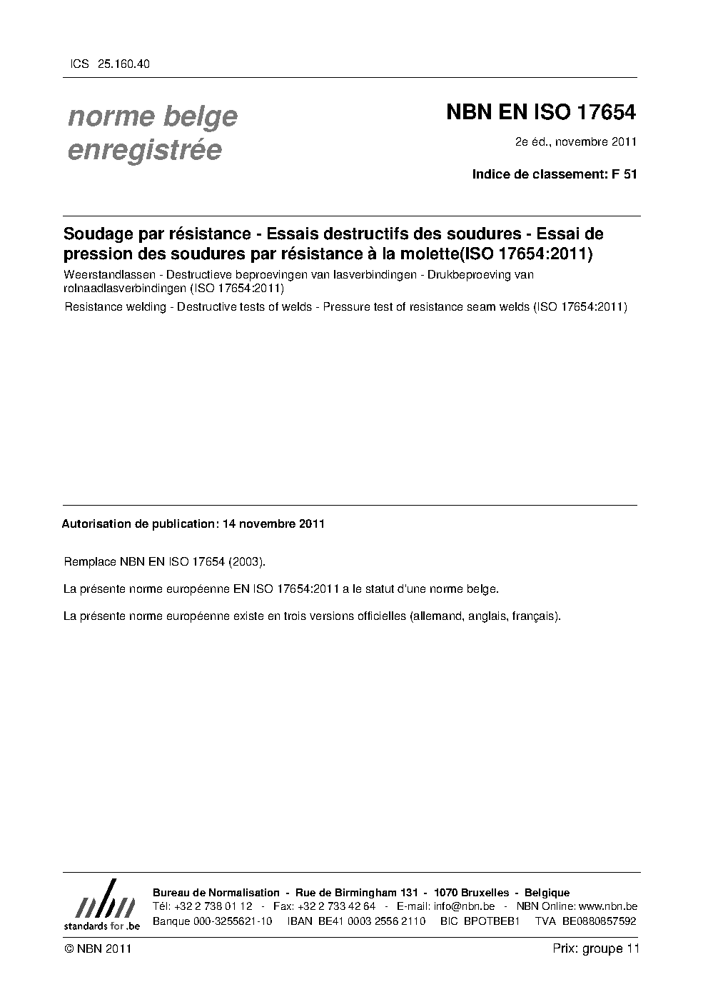 NBN EN ISO 17654:2011
