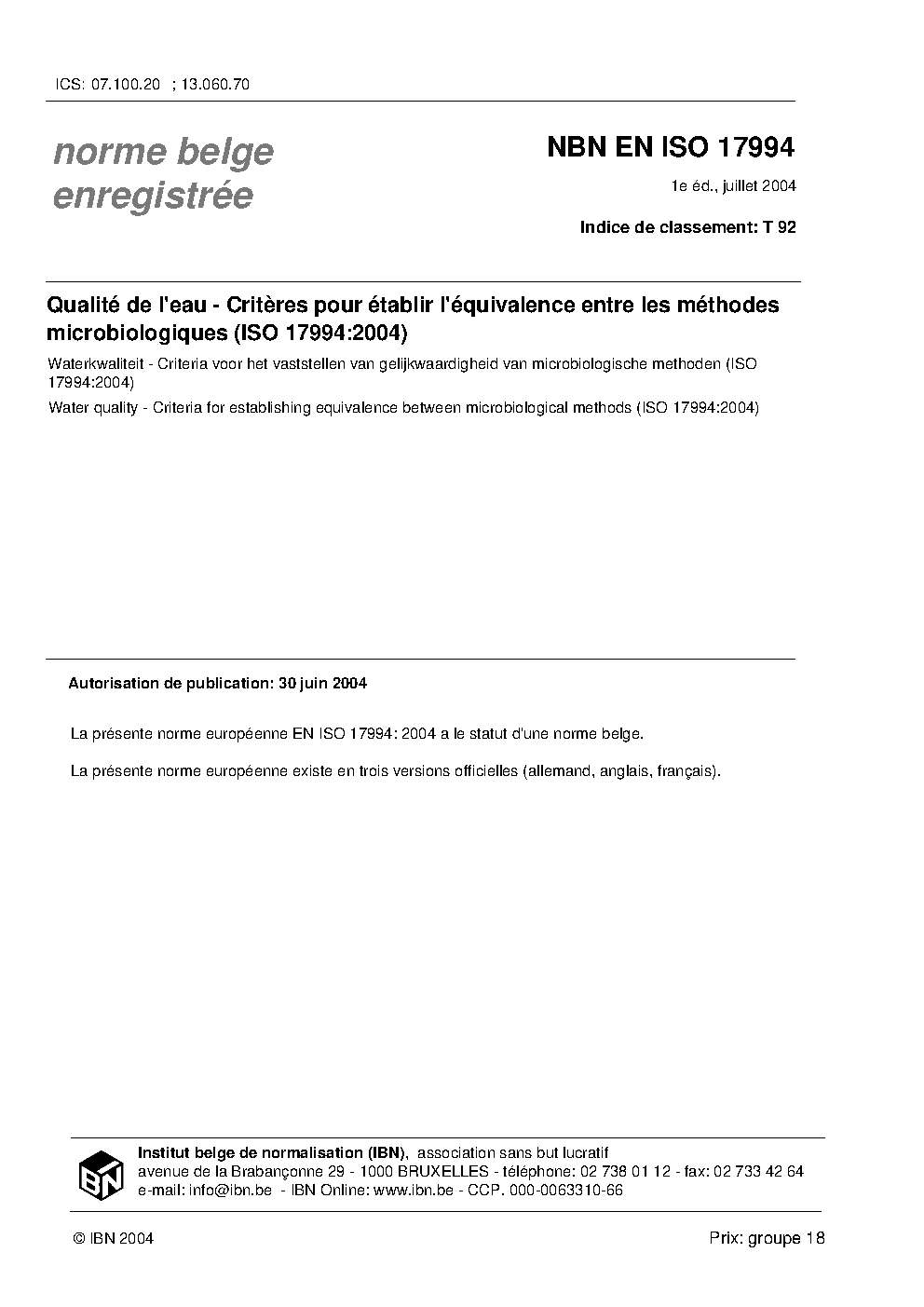 | Publisher | Bureau de Normalisation Belge (NBN) |