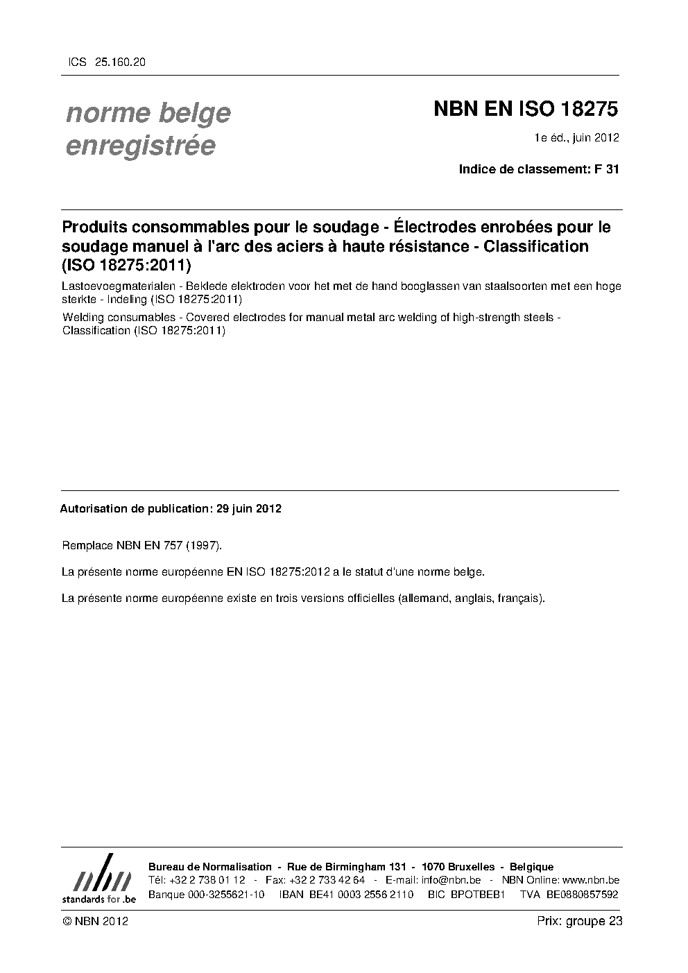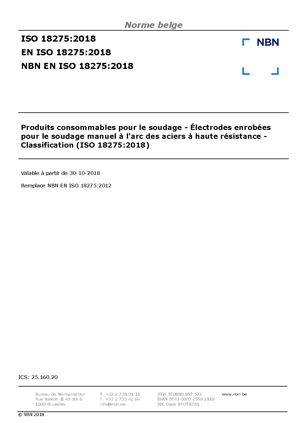 | Publisher | Bureau de Normalisation Belge (NBN) |