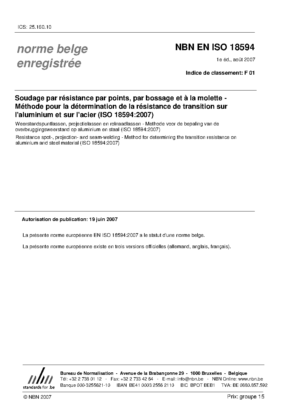 | Publisher | Bureau de Normalisation Belge (NBN) |
