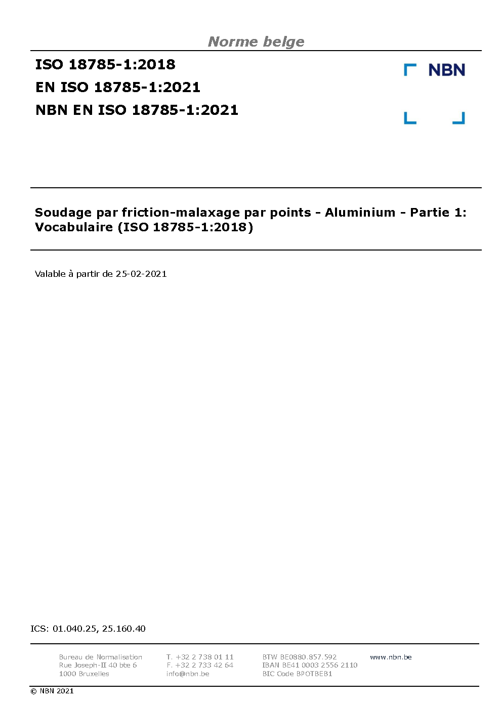 | Publisher | Bureau de Normalisation Belge (NBN) |
