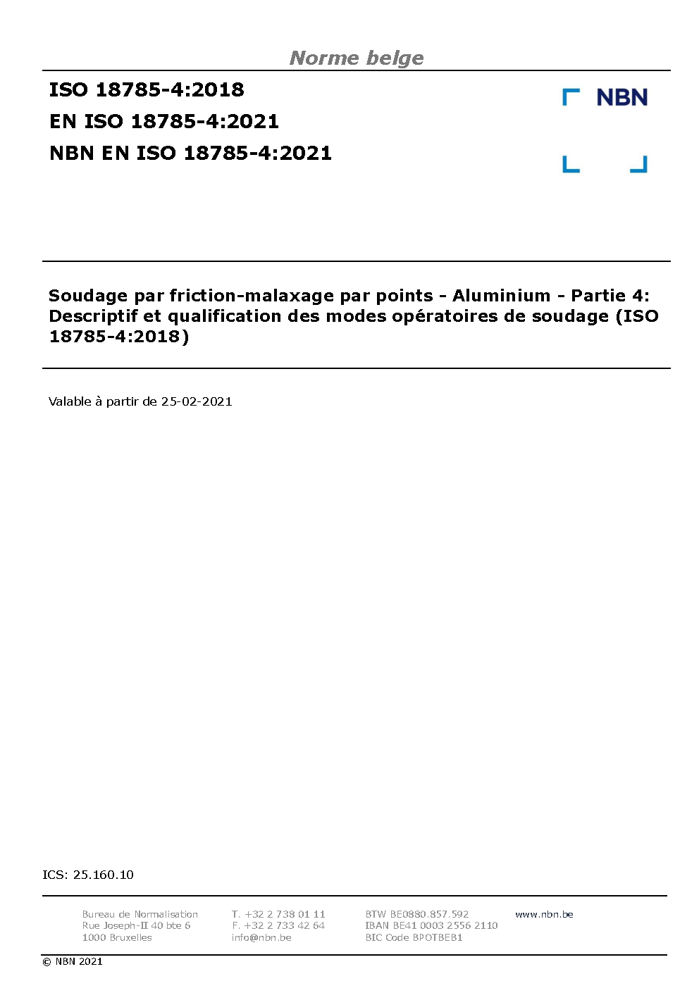 | Publisher | Bureau de Normalisation Belge (NBN) |