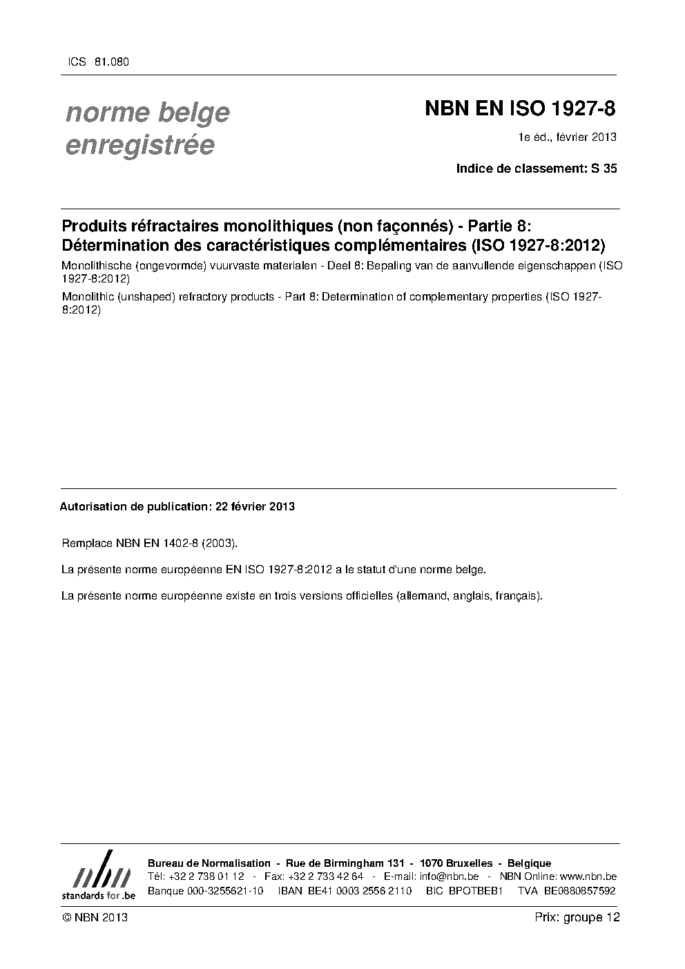 NBN EN ISO 1927-8:2013