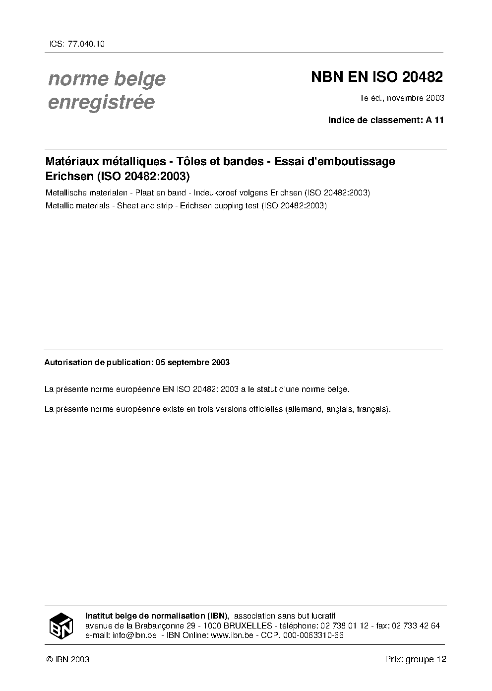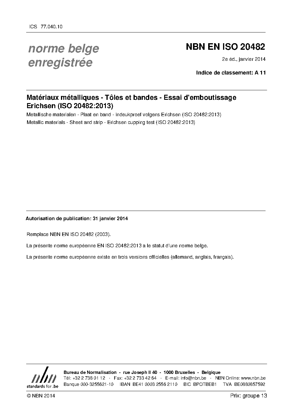 | Publisher | Bureau de Normalisation Belge (NBN) |