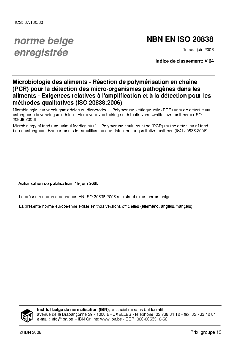 | Publisher | Bureau de Normalisation Belge (NBN) |