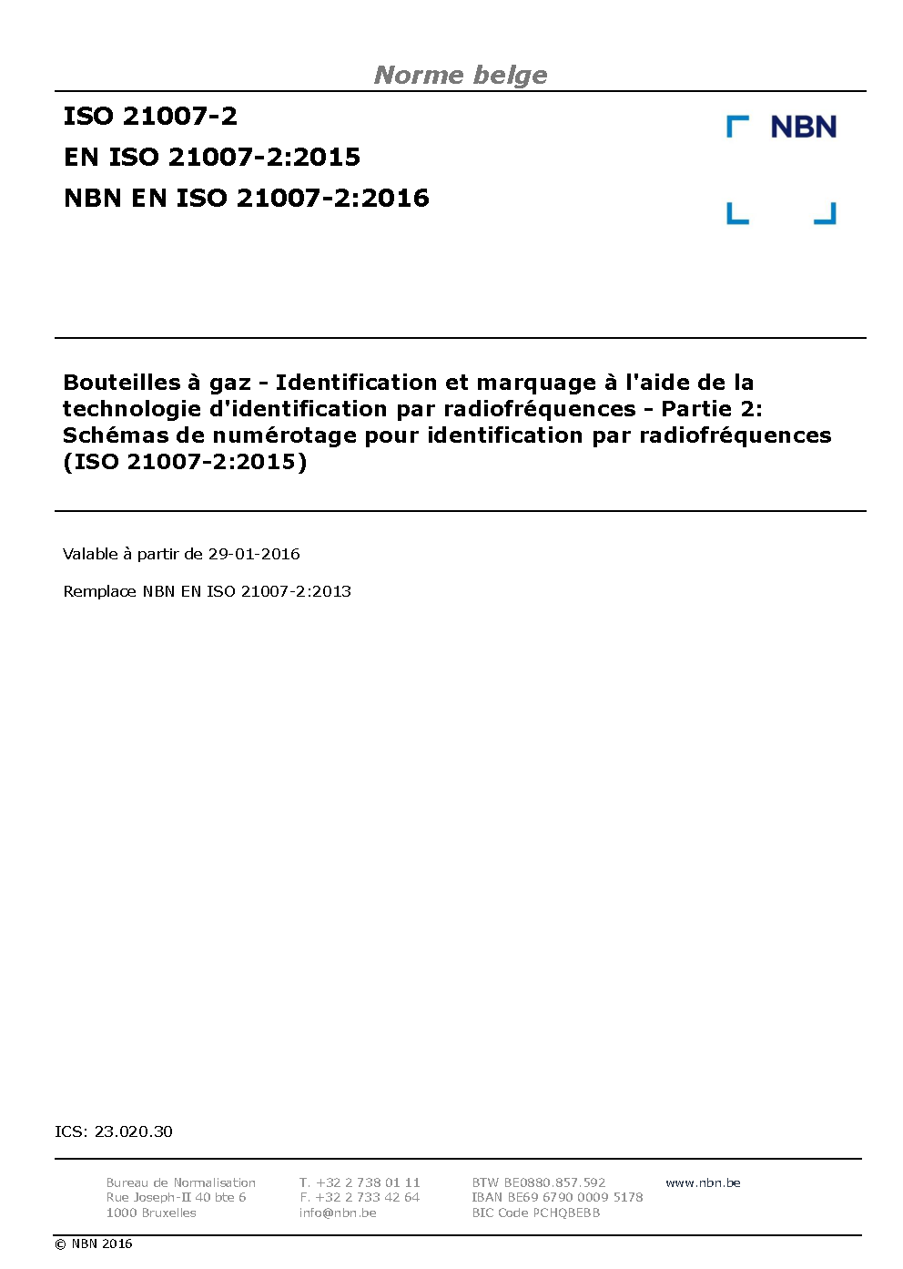 | Publisher | Bureau de Normalisation Belge (NBN) |