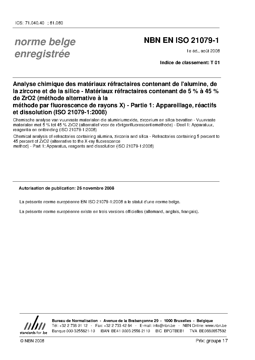 | Publisher | Bureau de Normalisation Belge (NBN) |