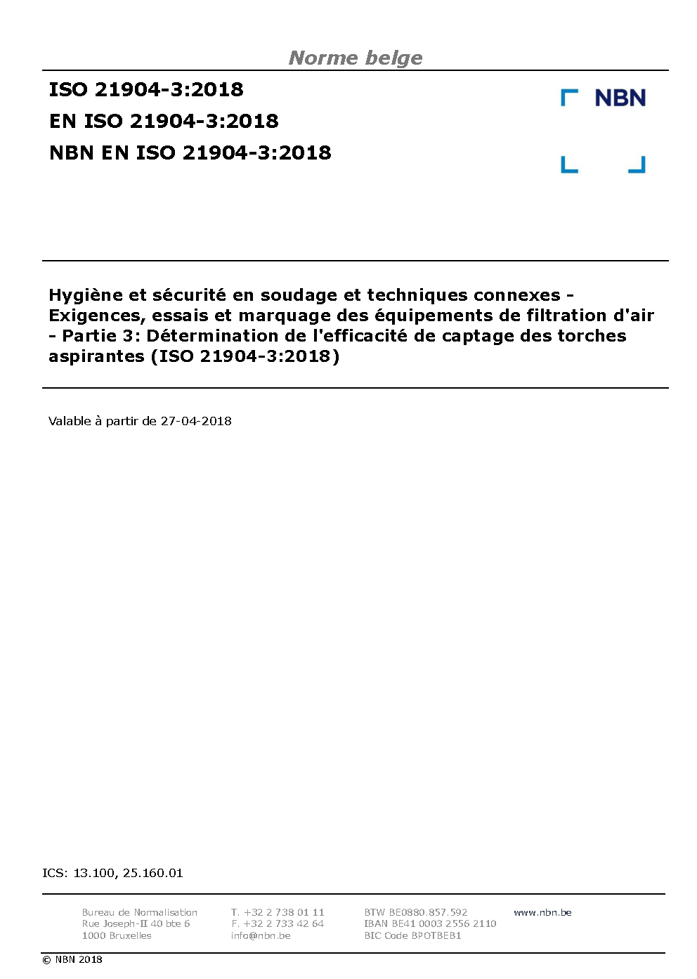 | Publisher | Bureau de Normalisation Belge (NBN) |