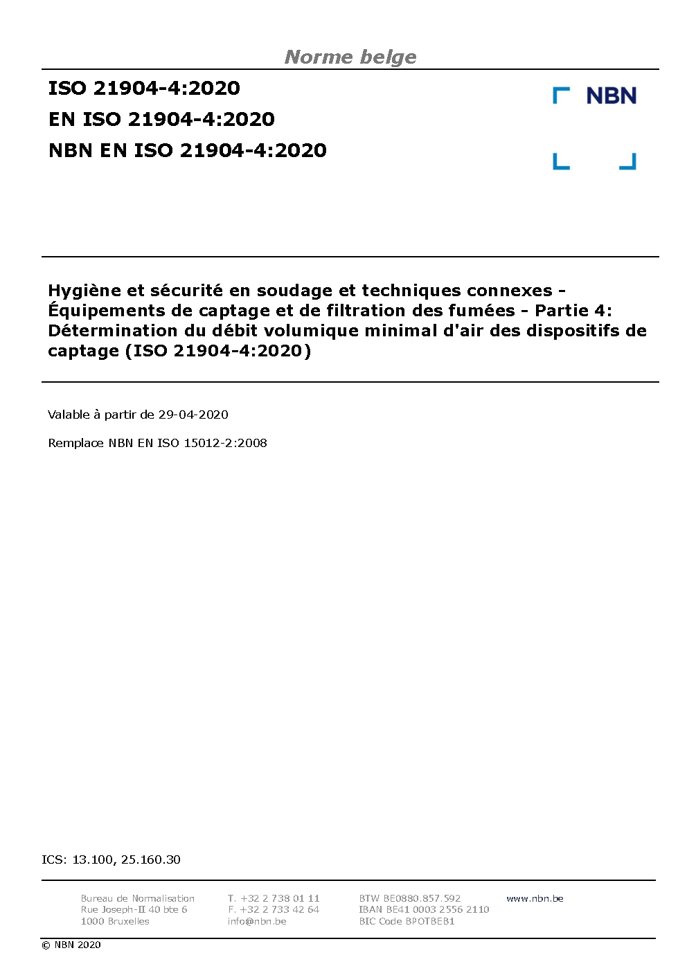 Health and safety in welding and allied processes - Equipment for capture and separation of welding fume - Part 4: Determination of the minimum air volume flow rate of capture devices (ISO 21904-4:2020)