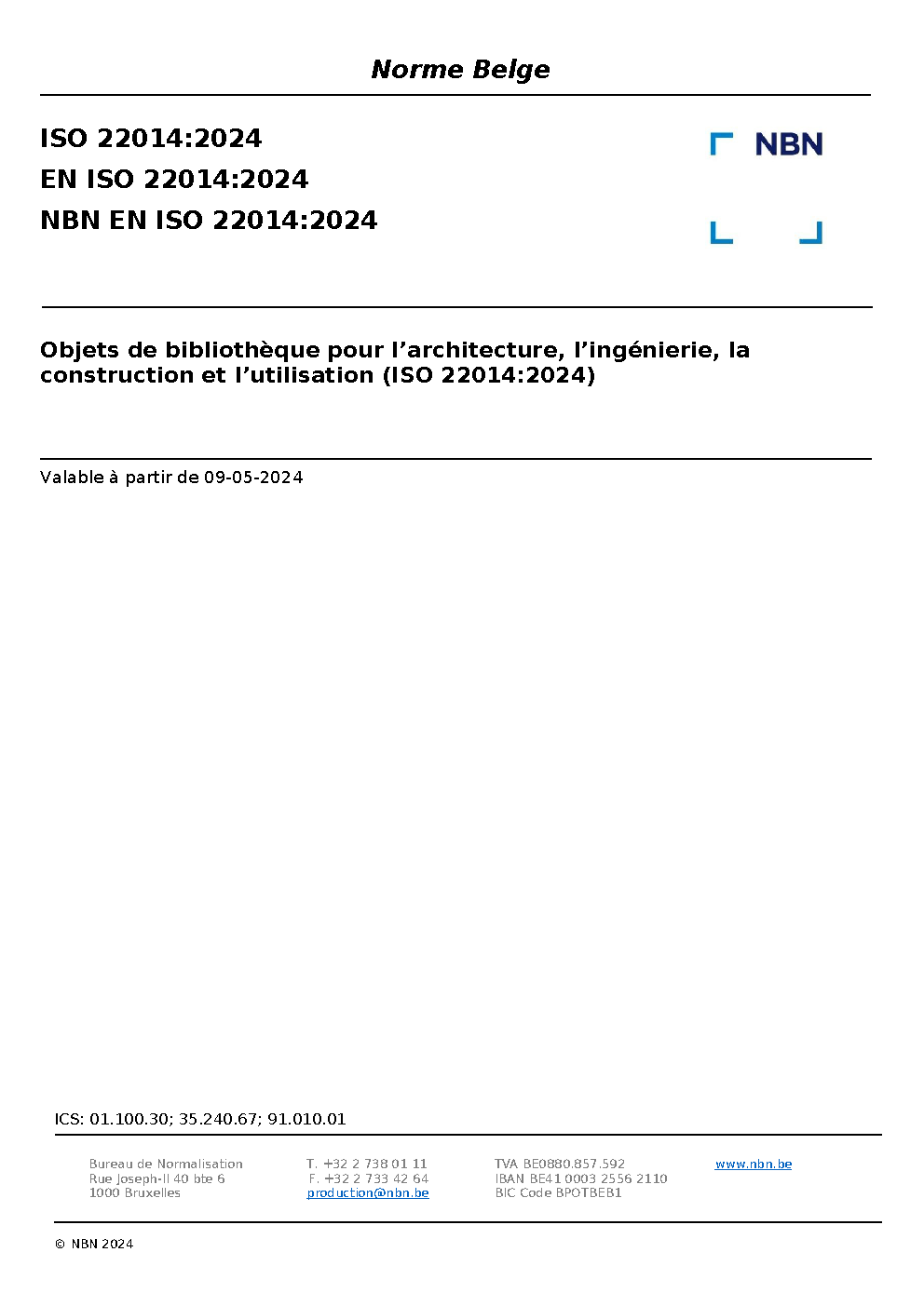 | Publisher | Bureau de Normalisation Belge (NBN) |