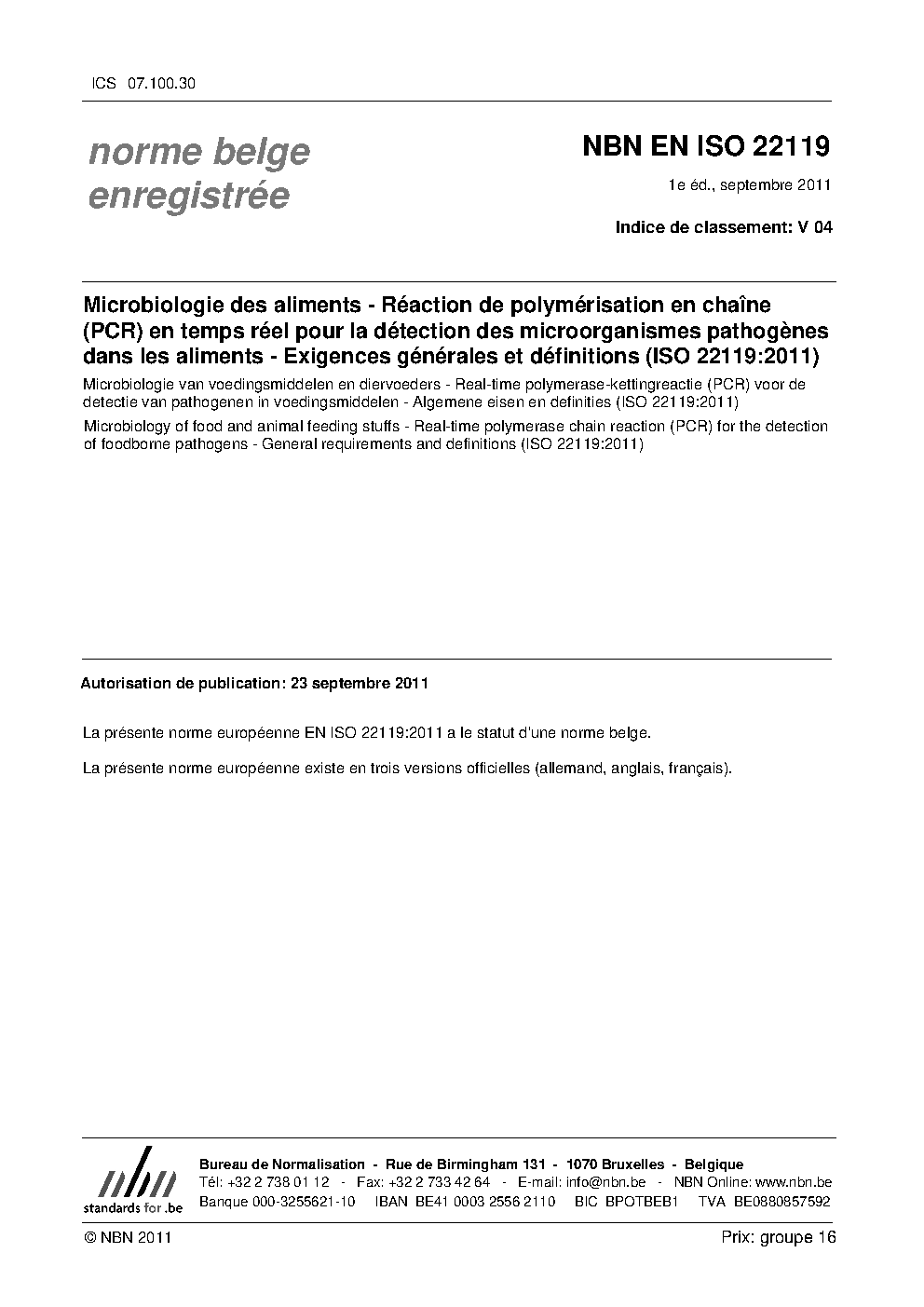 | Publisher | Bureau de Normalisation Belge (NBN) |