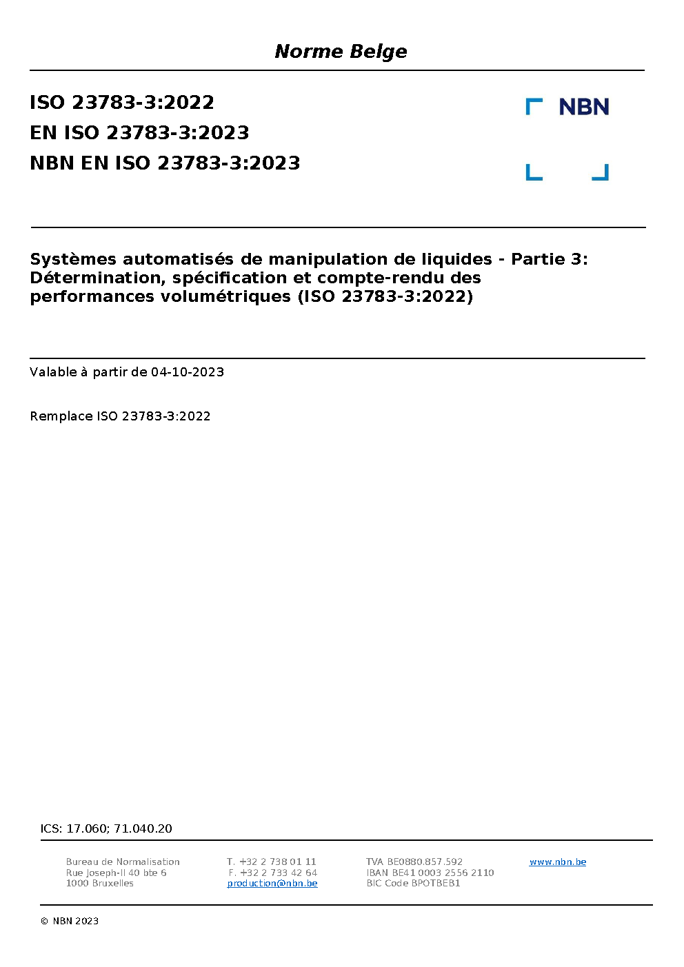| Publisher | Bureau de Normalisation Belge (NBN) |