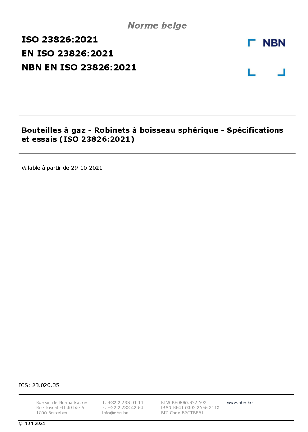 | Publisher | Bureau de Normalisation Belge (NBN) |
