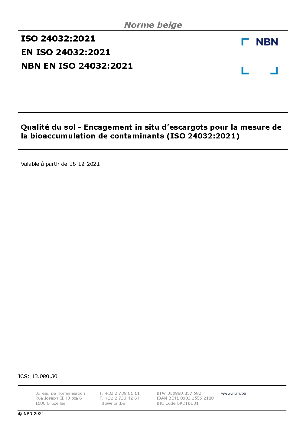 Soil quality - In situ caging of snails to assess bioaccumulation of contaminants (ISO 24032:2021)
