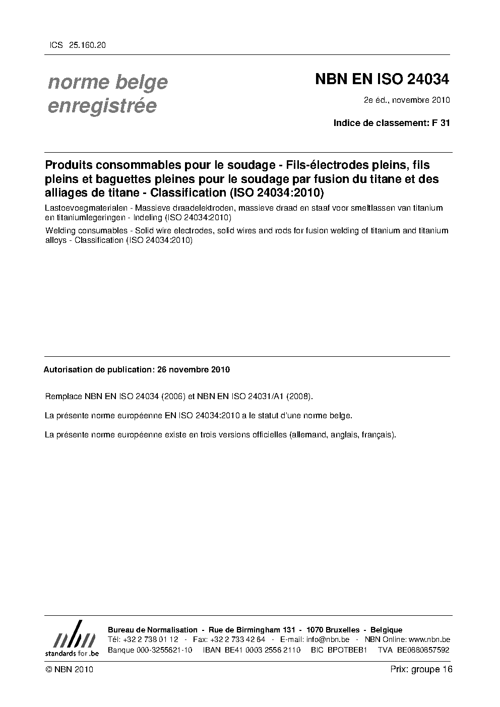 Publisher Bureau de Normalisation Belge (NBN)