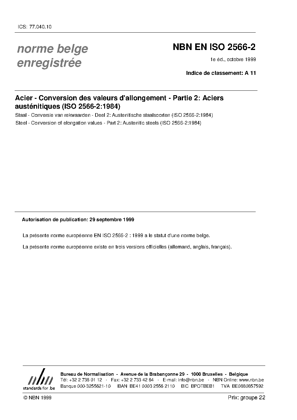 | Publisher | Bureau de Normalisation Belge (NBN) |