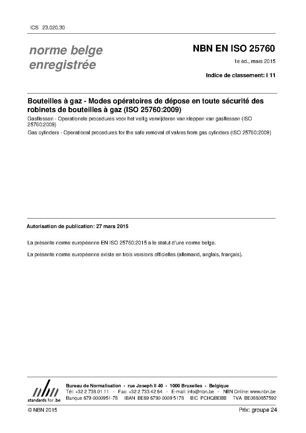 | Publisher | Bureau de Normalisation Belge (NBN) |