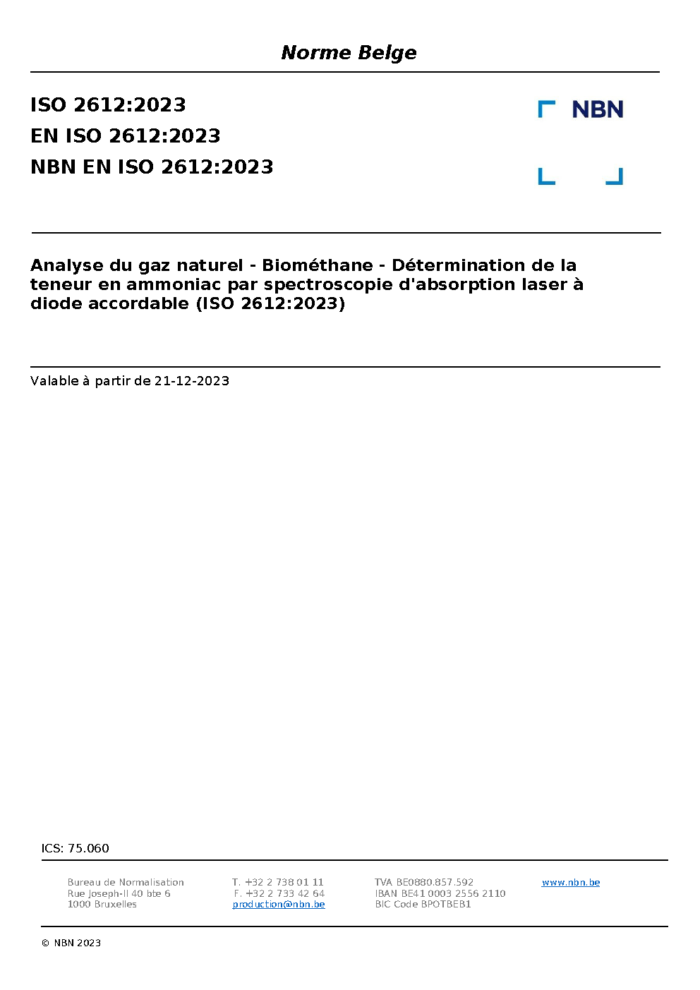 | Publisher | Bureau de Normalisation Belge (NBN) |