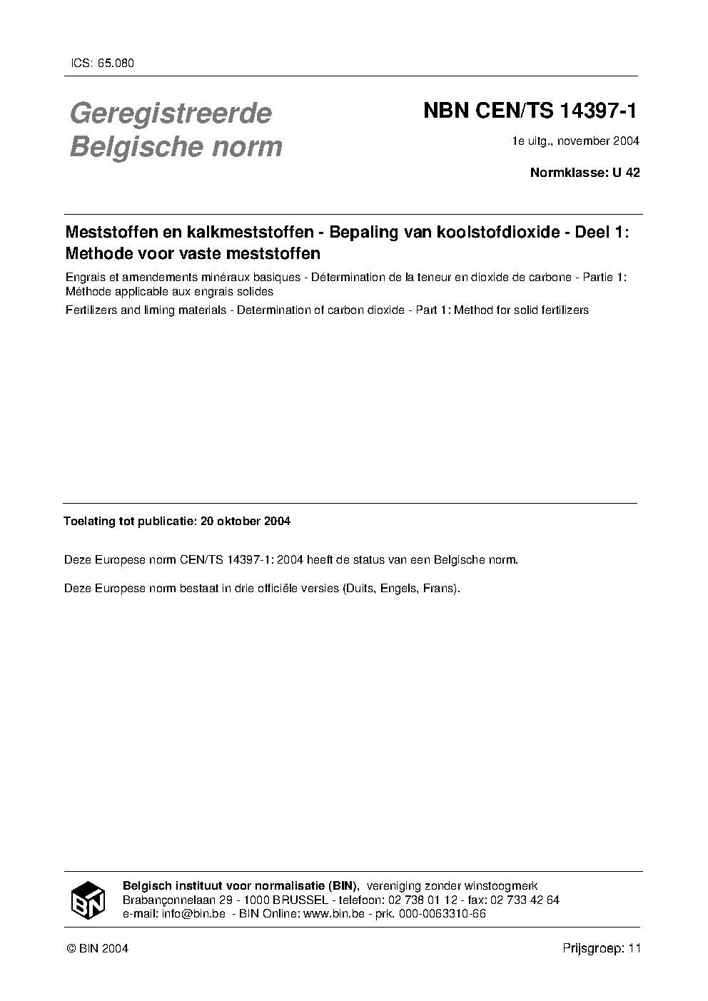 | Publisher | Bureau de Normalisation Belge (NBN) |
