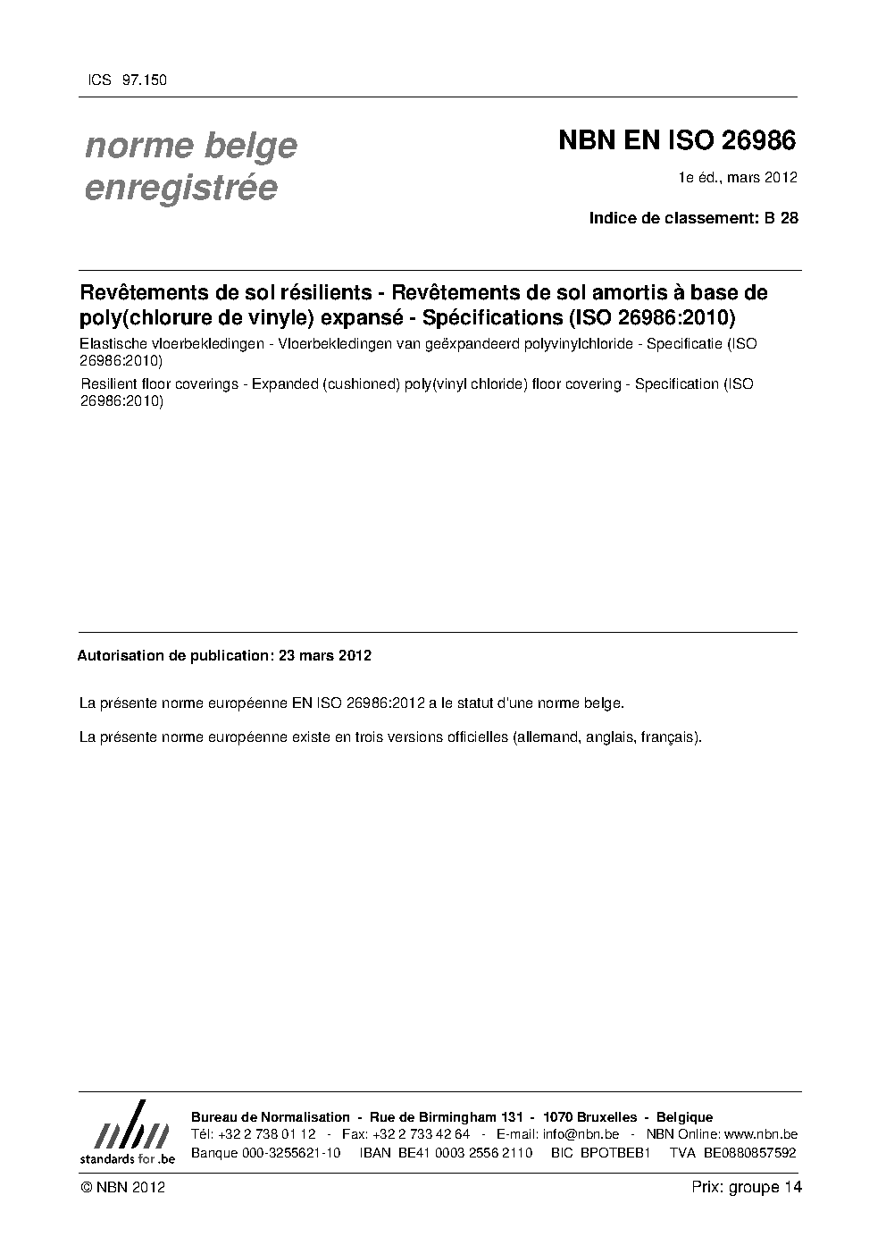 | Publisher | Bureau de Normalisation Belge (NBN) |