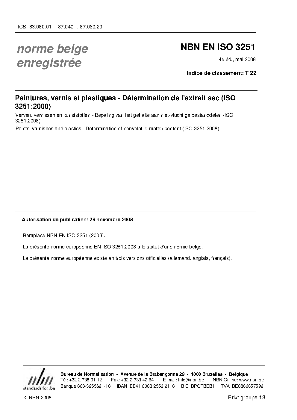 NBN EN ISO 3251:2008
