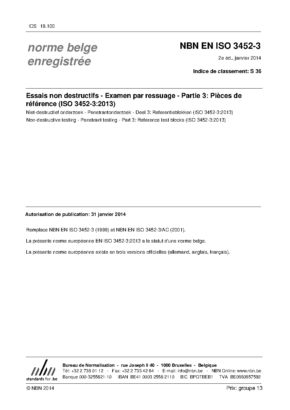 | Publisher | Bureau de Normalisation Belge (NBN) |