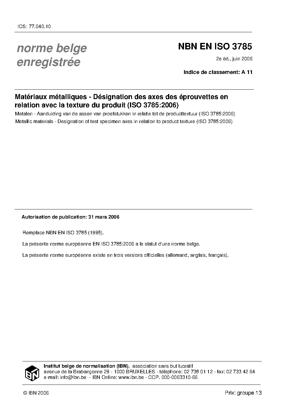 | Publisher | Bureau de Normalisation Belge (NBN) |