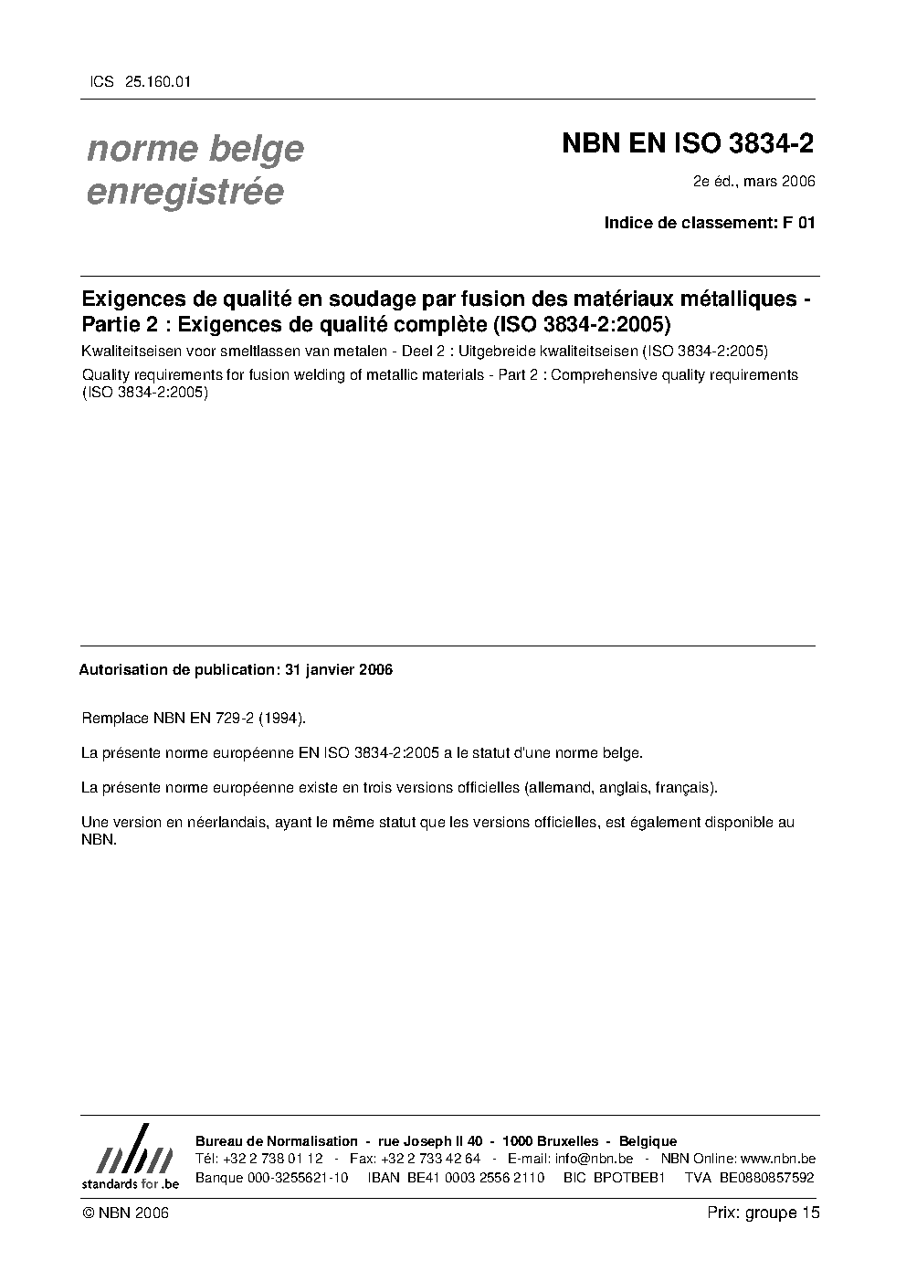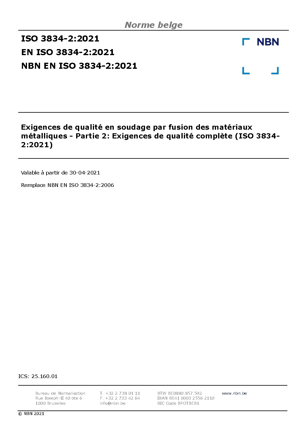 NBN EN ISO 3834-2:2006