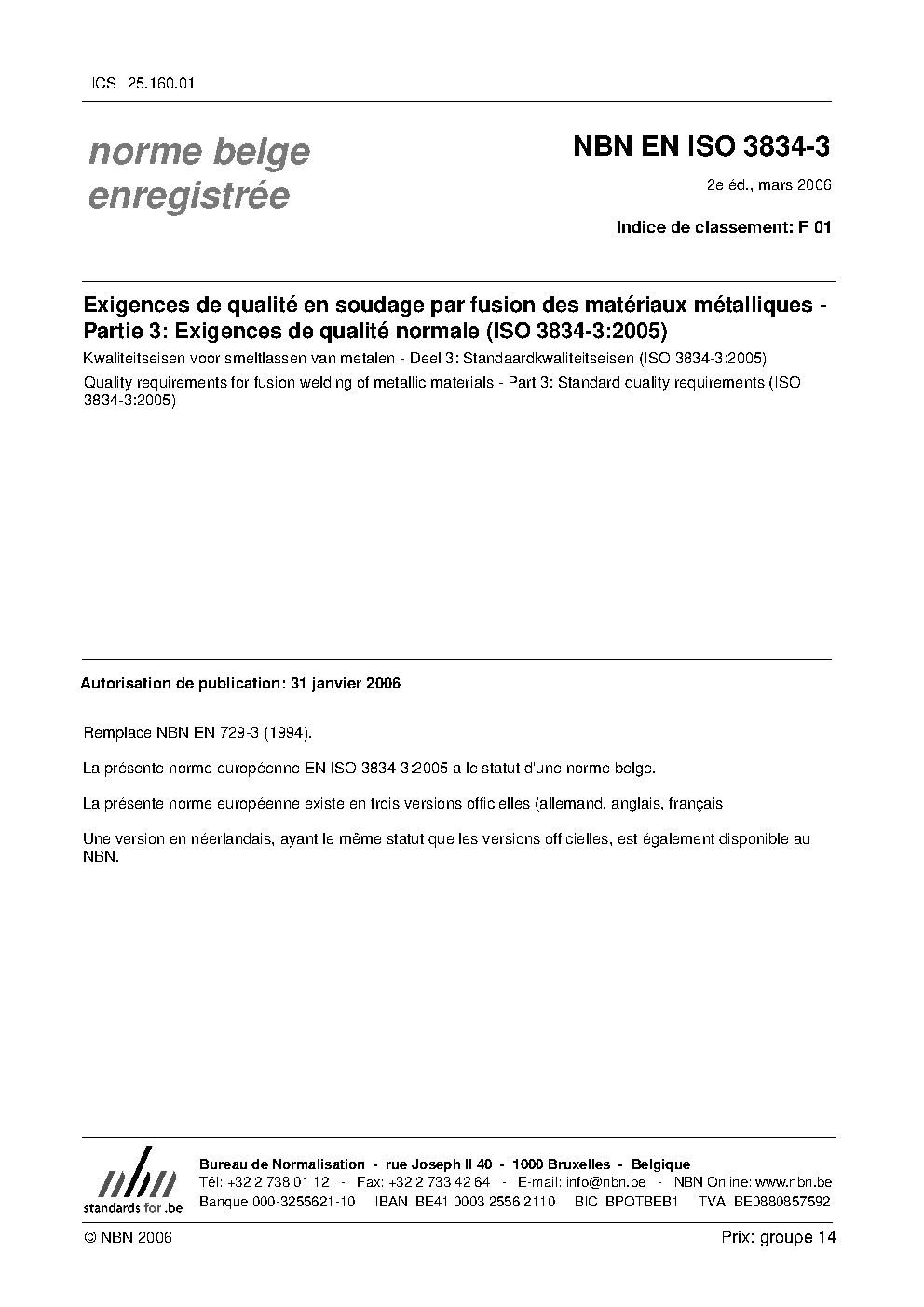 NBN EN ISO 3834-3:2006