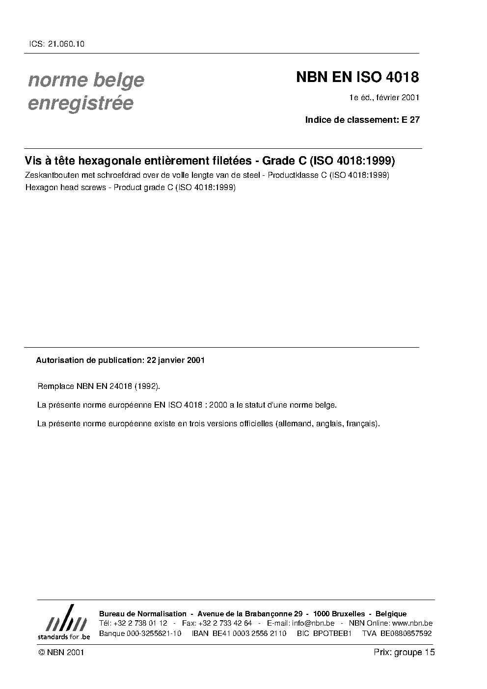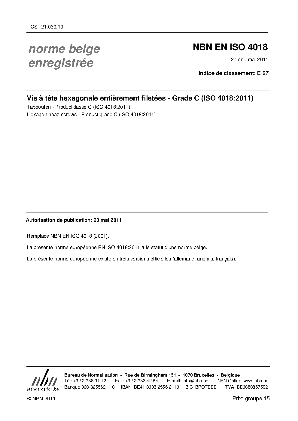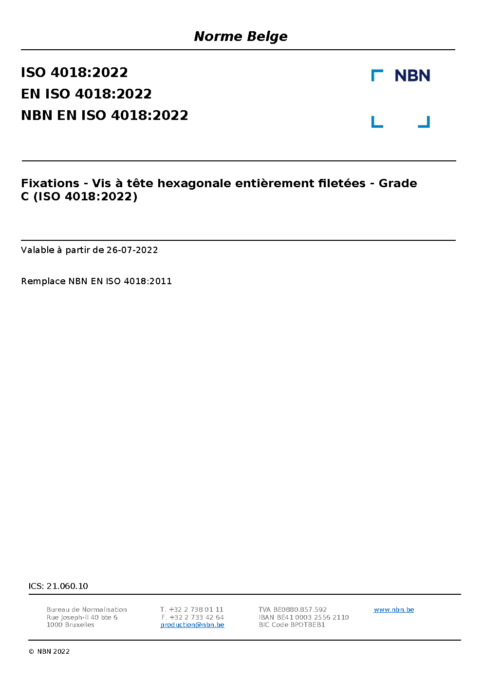 | Publisher | Bureau de Normalisation Belge (NBN) |