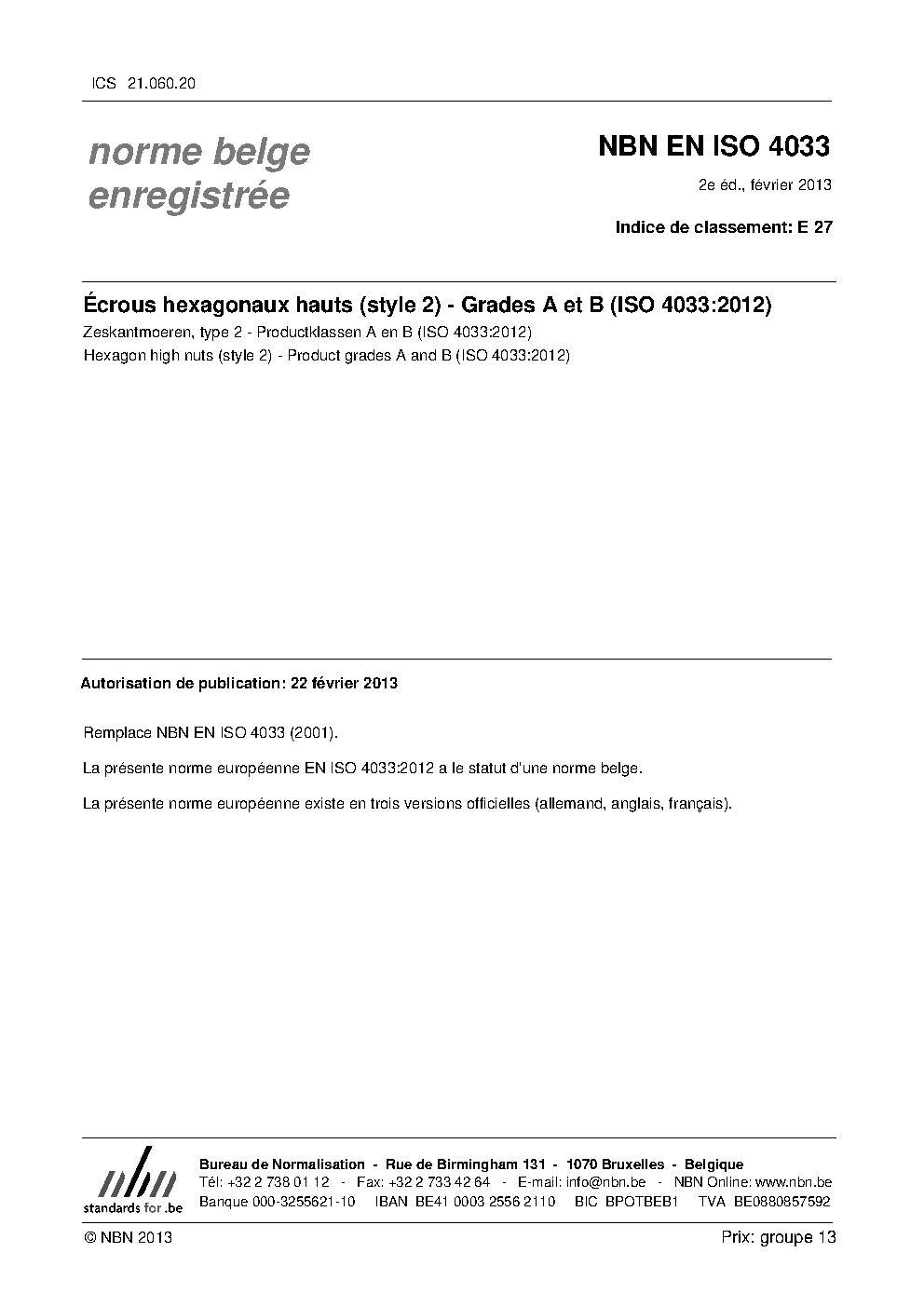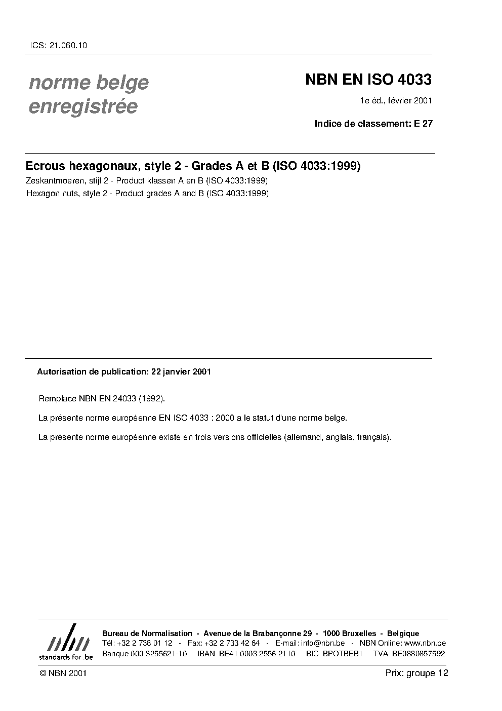 | Publisher | Bureau de Normalisation Belge (NBN) |