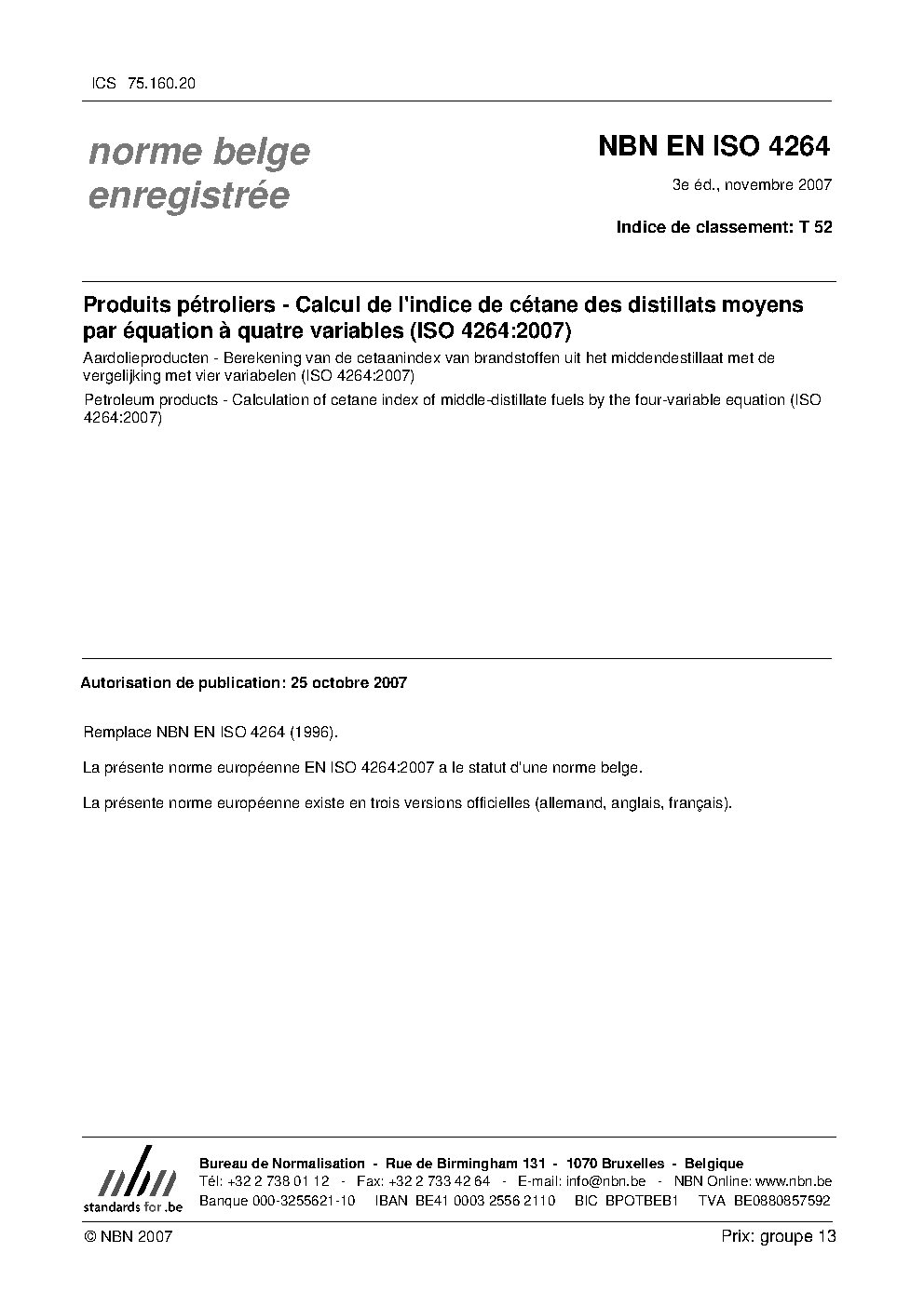| Publisher | Bureau de Normalisation Belge (NBN) |