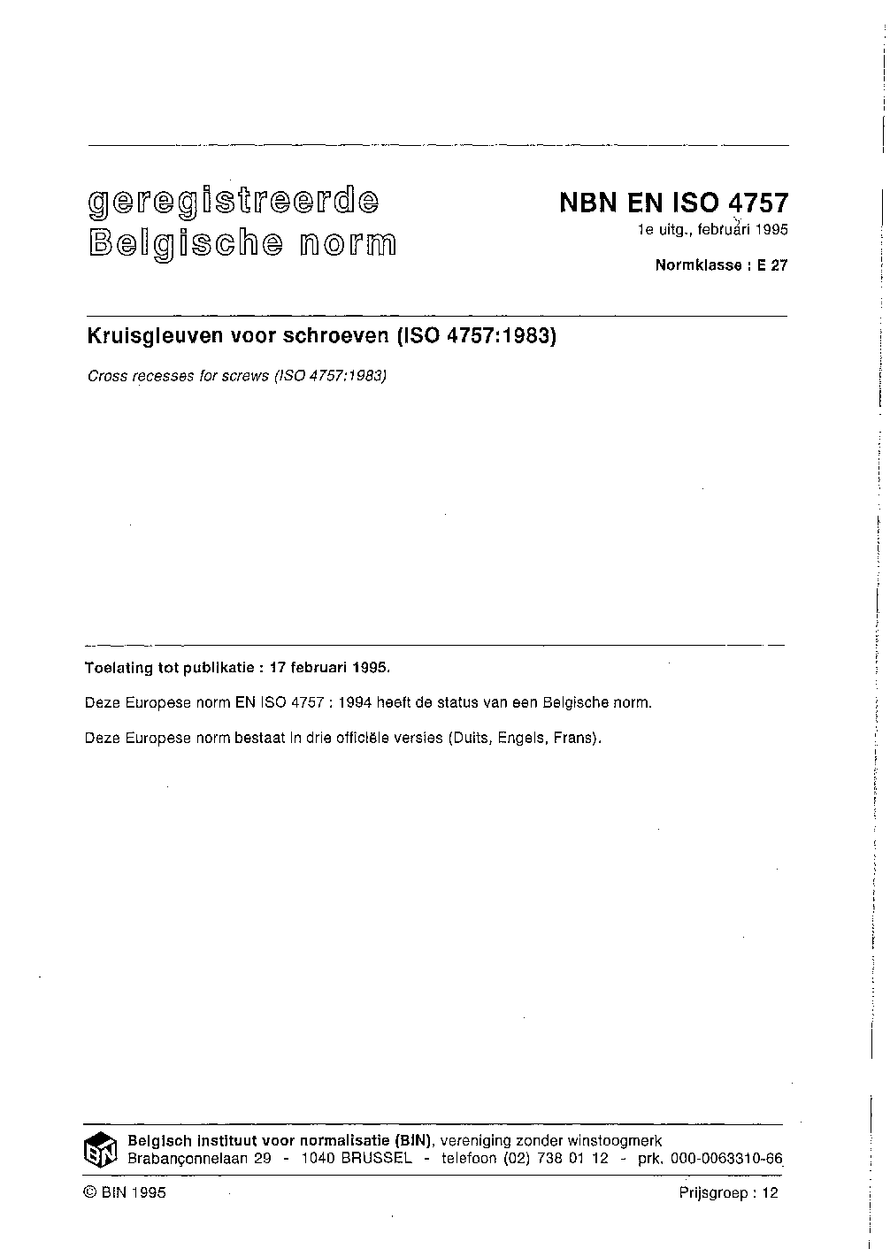 | Publisher | Bureau de Normalisation Belge (NBN) |