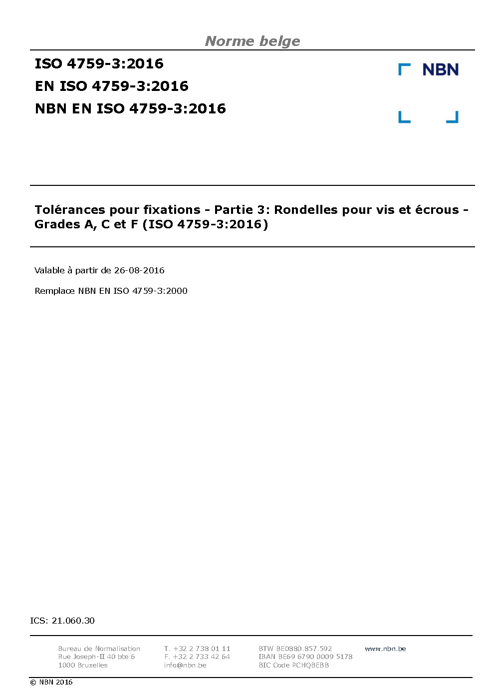 | Publisher | Bureau de Normalisation Belge (NBN) |