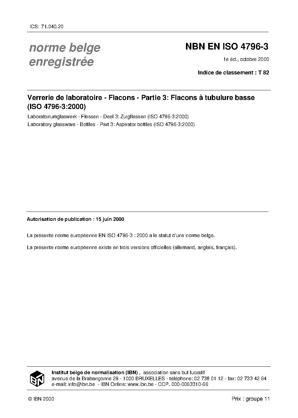 | Publisher | Bureau de Normalisation Belge (NBN) |
