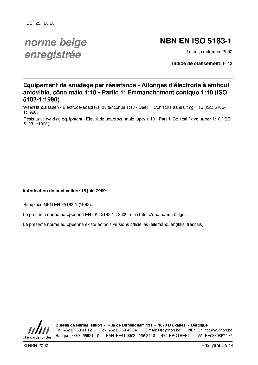 | Publisher | Bureau de Normalisation Belge (NBN) |