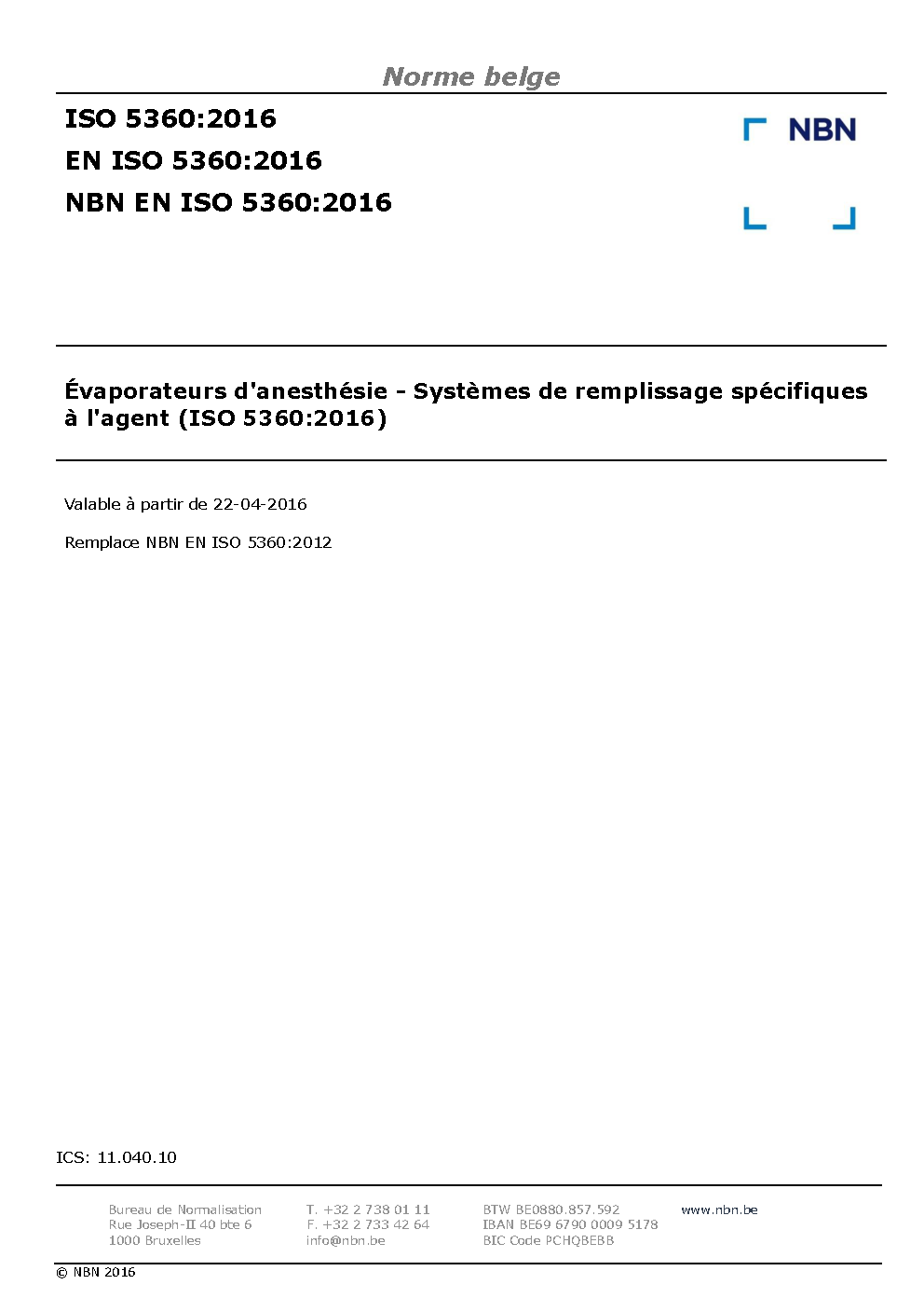 NBN EN ISO 5360:2016