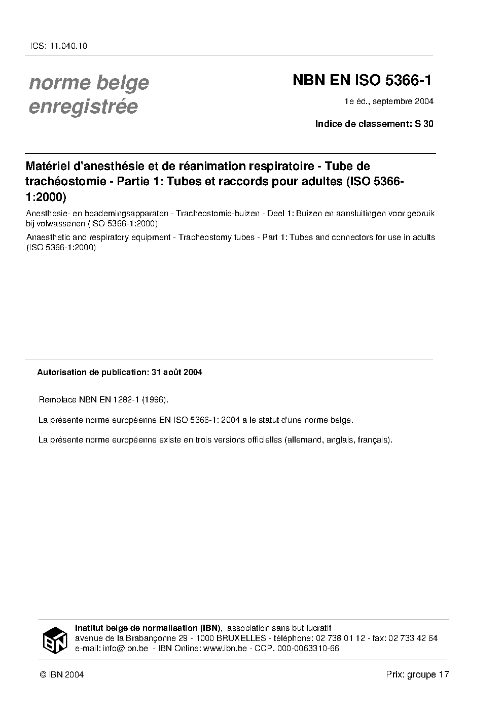 | Publisher | Bureau de Normalisation Belge (NBN) |