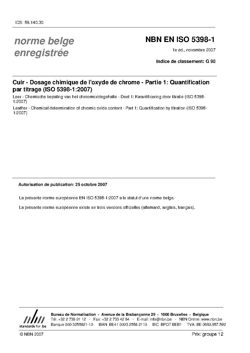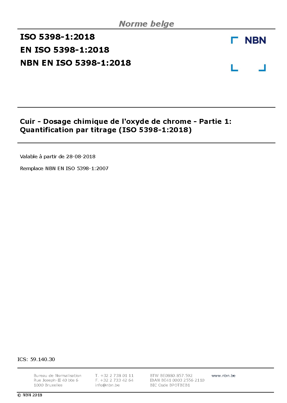 | Publisher | Bureau de Normalisation Belge (NBN) |