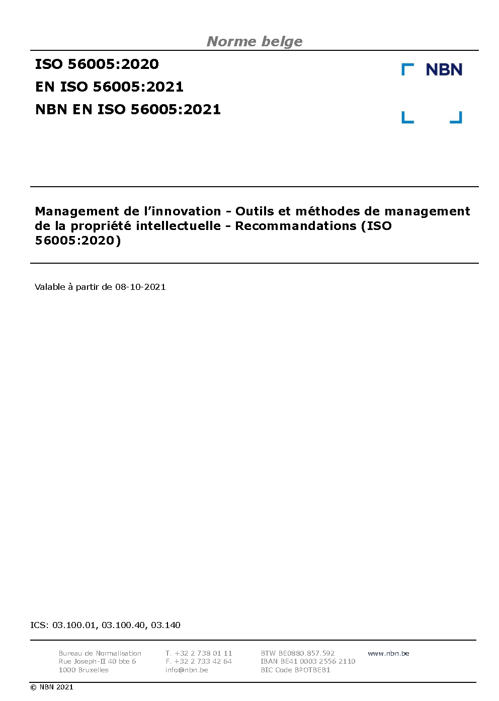NBN EN ISO 56005:2021