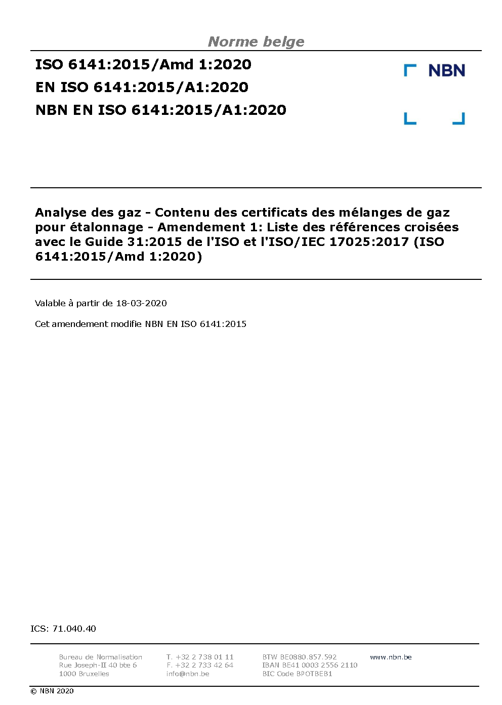 NBN EN ISO 6141:2015