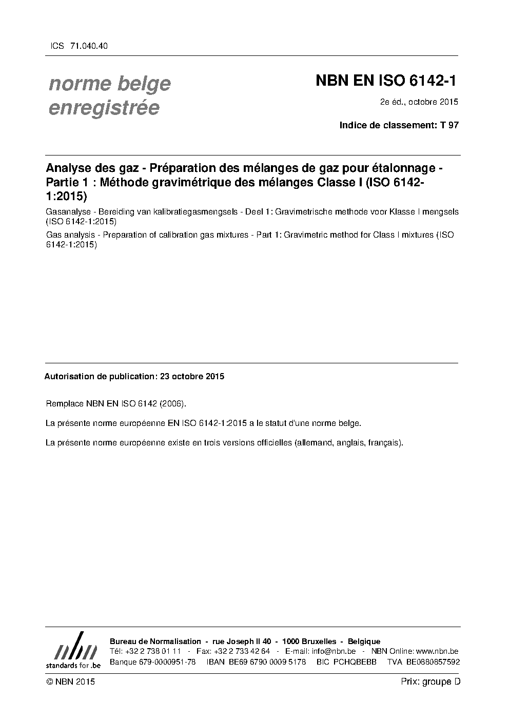 | Publisher | Bureau de Normalisation Belge (NBN) |