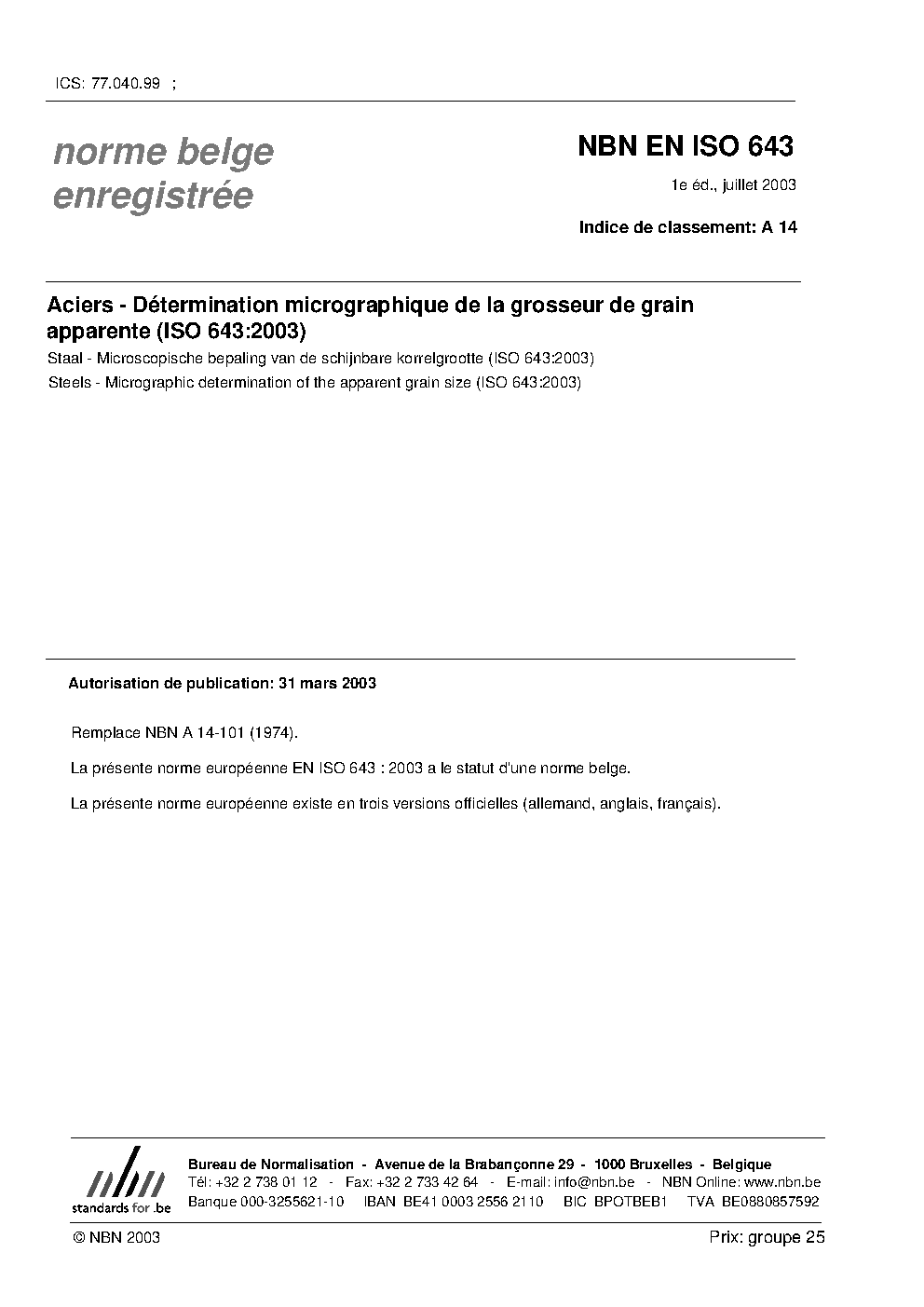 | Publisher | Bureau de Normalisation Belge (NBN) |