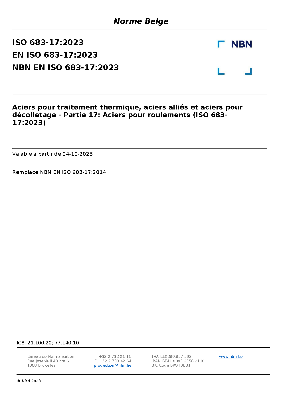 NBN EN ISO 683-17:2023