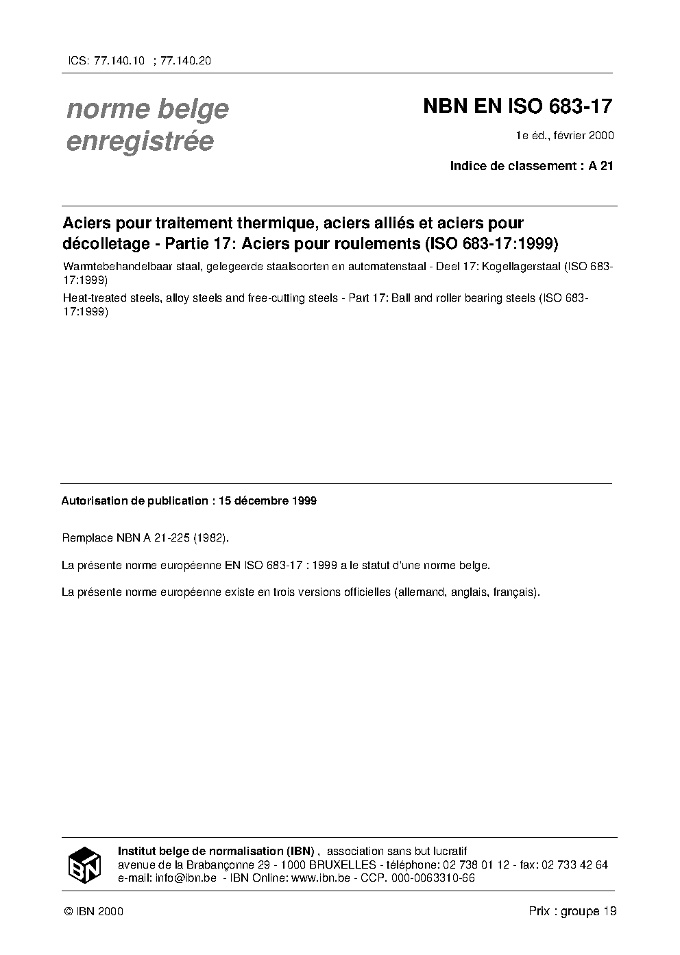 | Publisher | Bureau de Normalisation Belge (NBN) |