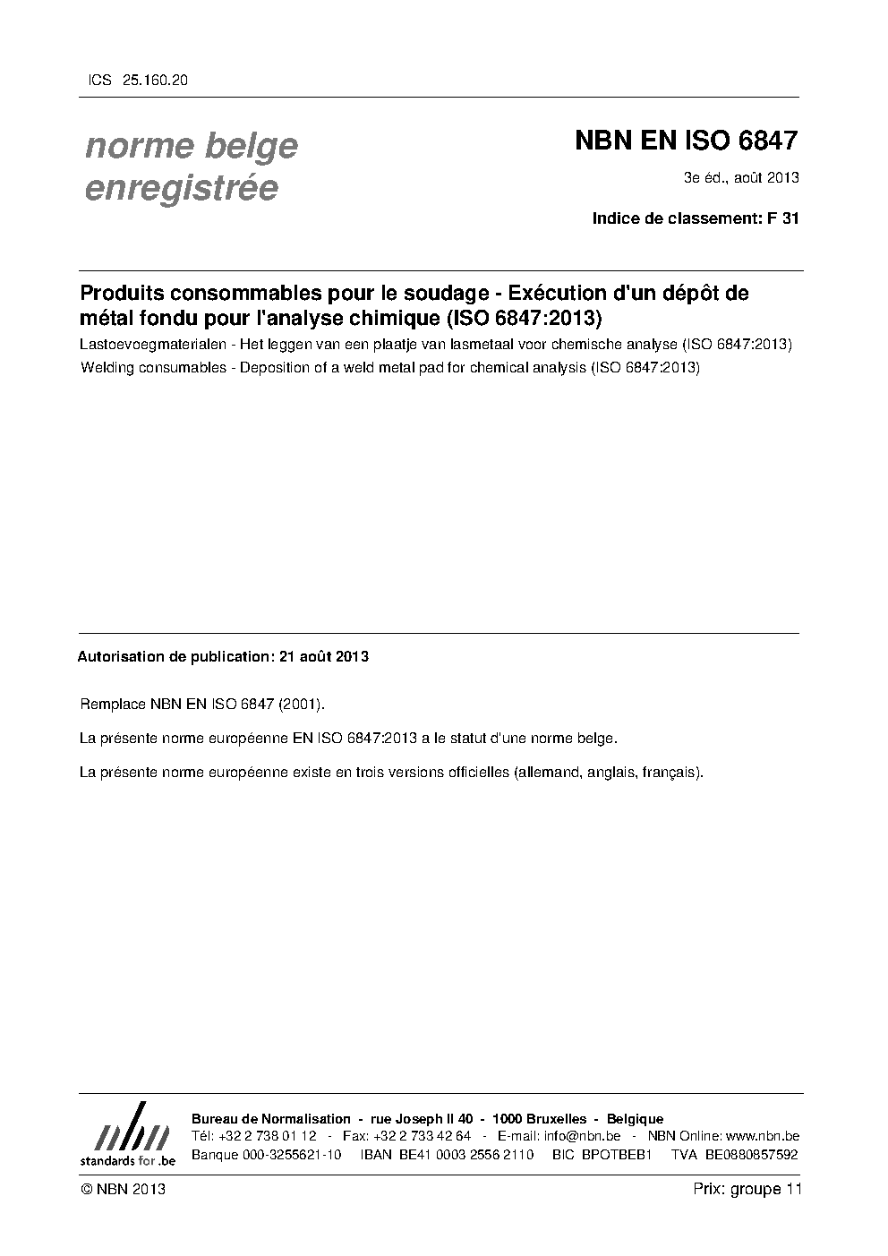 | Publisher | Bureau de Normalisation Belge (NBN) |
