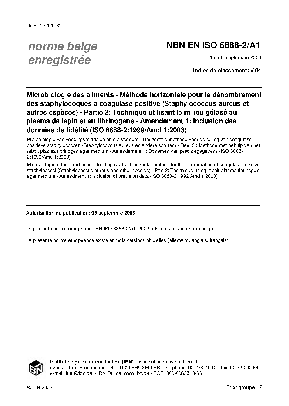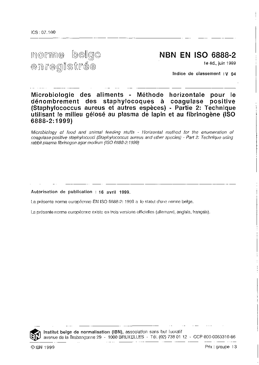 | Publisher | Bureau de Normalisation Belge (NBN) |