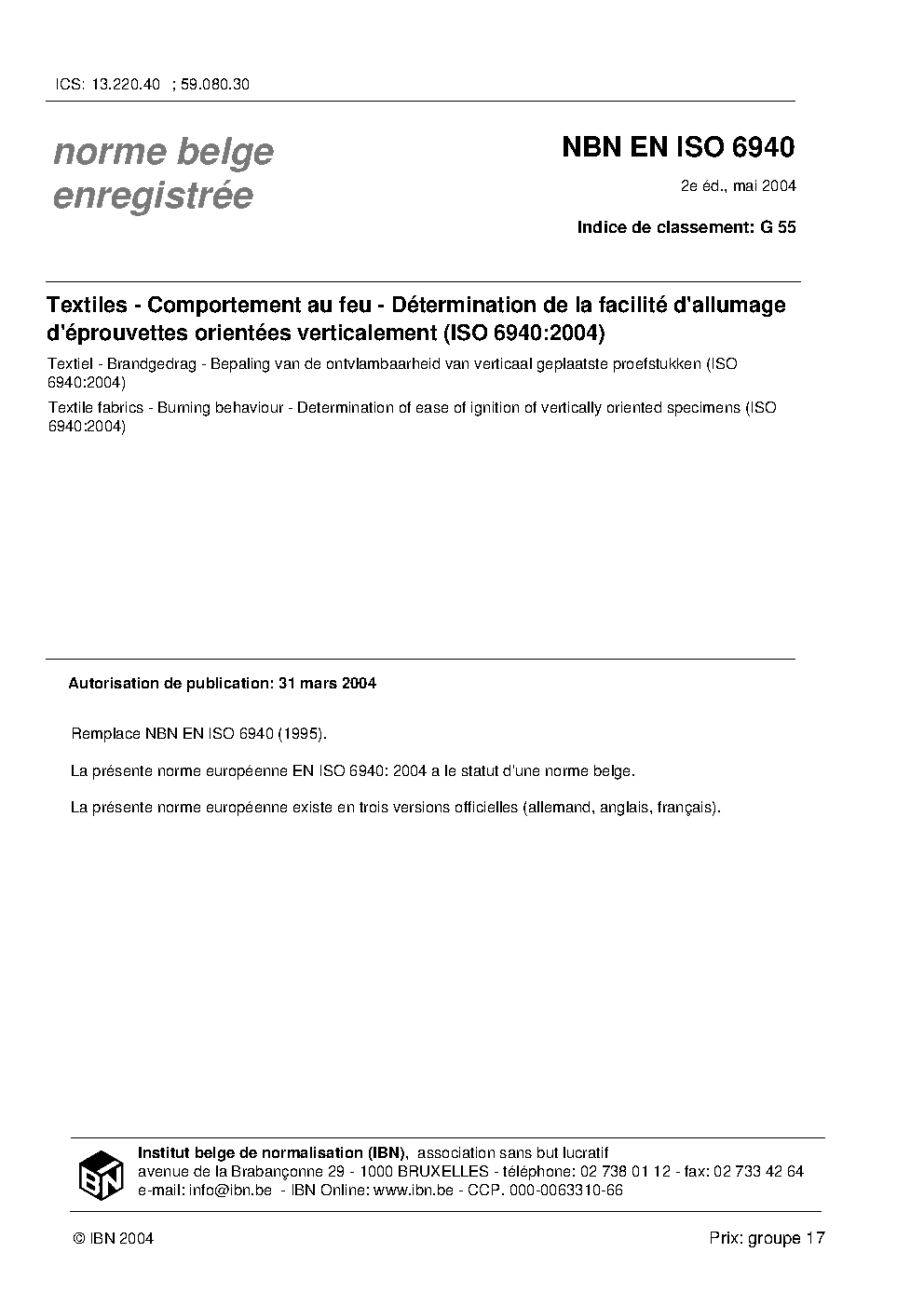 | Publisher | Bureau de Normalisation Belge (NBN) |