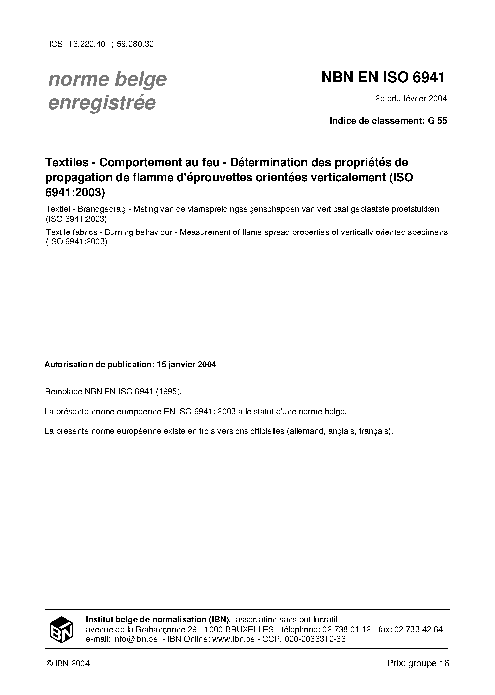 NBN EN ISO 6941:2004